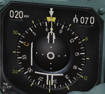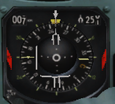 6.Директорная стрелка тангажа-стрелка выдает директорный сигнал управления по тангажу.
